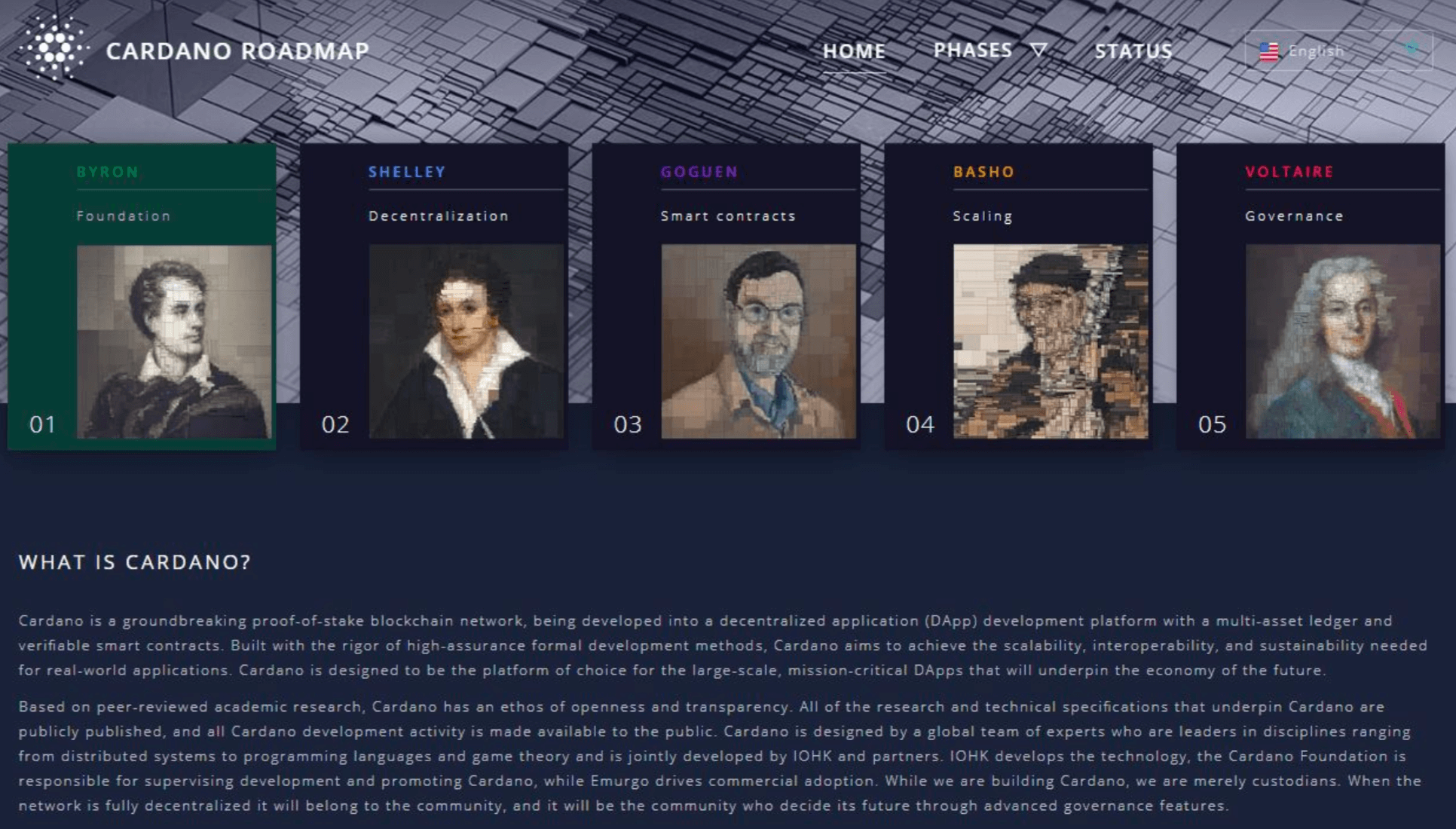 Cardano's creators have divided the development plan into five distinct phases called "eras." Among them: