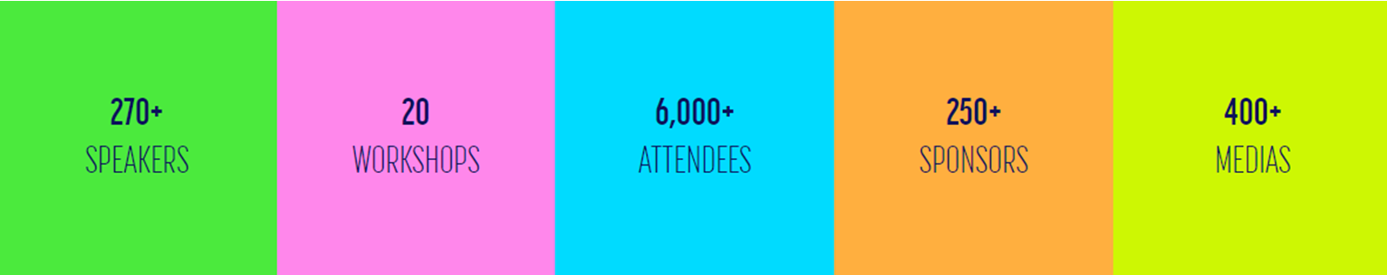 The conference consists of 2 stages, more than 80 panels for presentations, and an entire lecture hall promoting learning. Over 6,000 people, hundreds of press representatives, and dozens of speakers attended last year's event.