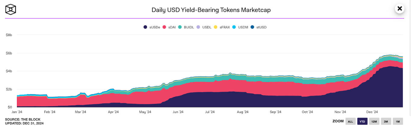 the share of revenue-generating stablecoins grew to 3% in the market structure, as a consequence, the market capitalization of tokenized treasury bonds grew by 414%;