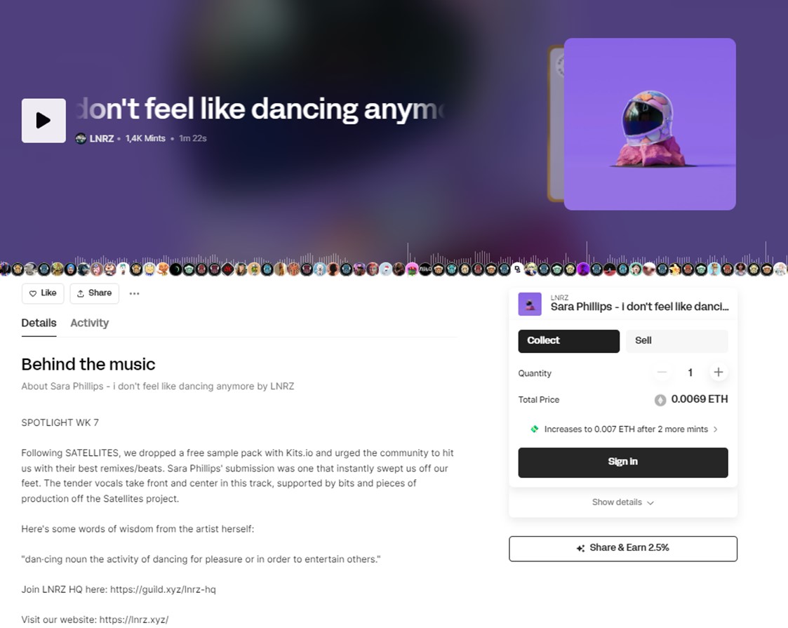 - Selling without intermediaries. Musicians can sell their music directly through music NFT marketplaces without intermediaries, earning a more significant share of sales profits than with the traditional approach.
