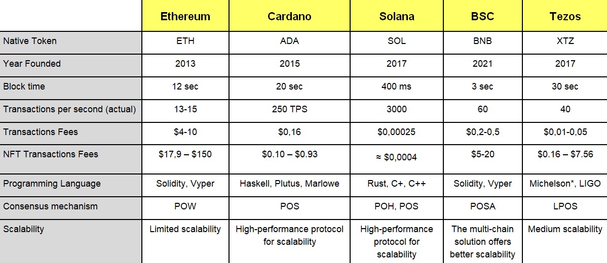 Next, you must choose a blockchain based on which your NFT marketplace will work. This can be a single blockchain (faster and cheaper to implement) or integration with several popular networks, such as Ethereum, BNB Chain, Cardano, Solana, Tezos, and Flow. Your choice will depend on your marketplace requirements, the scale of operations, technical capabilities, and the ecosystem you want to recreate. Carefully examine each platform, its advantages, and disadvantages to make an informed choice and ensure the long-term success of your NFT solution.