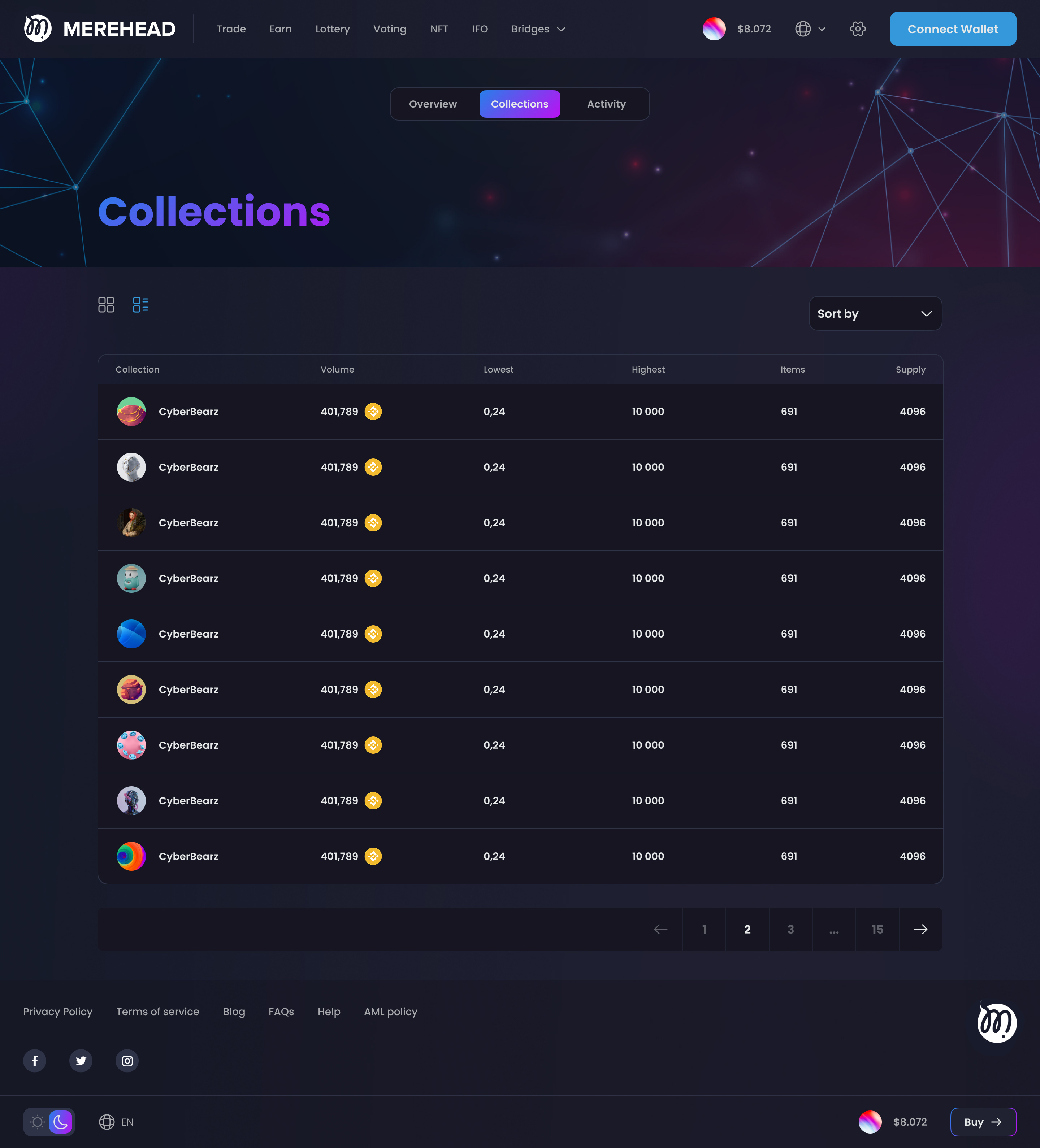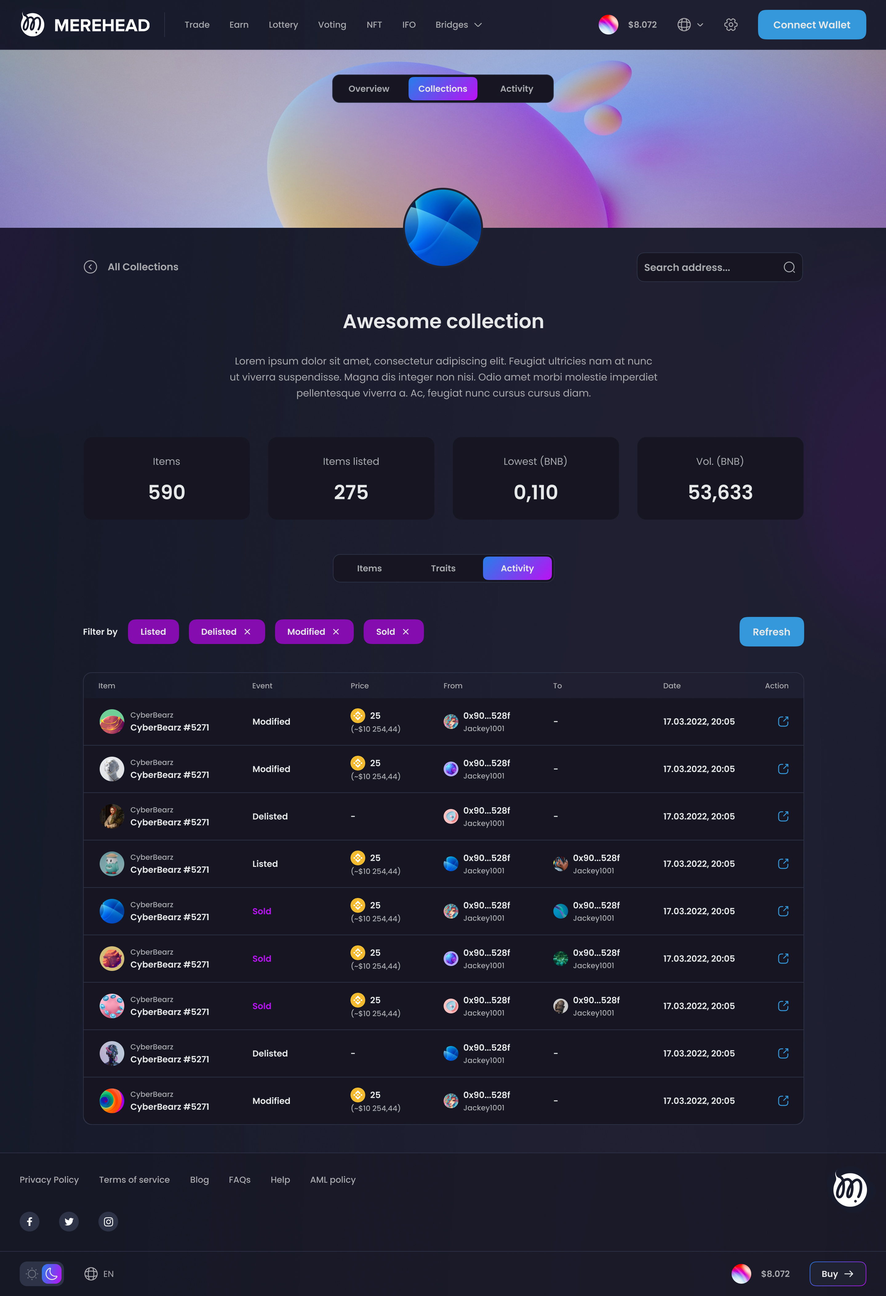 The leading NFT-platform in the Solana ecosystem, focused on the gaming industry and digital art. It features low fees, fast work speed, and an active community. Later added support for Ethereum and Bitcoin Ordinals.