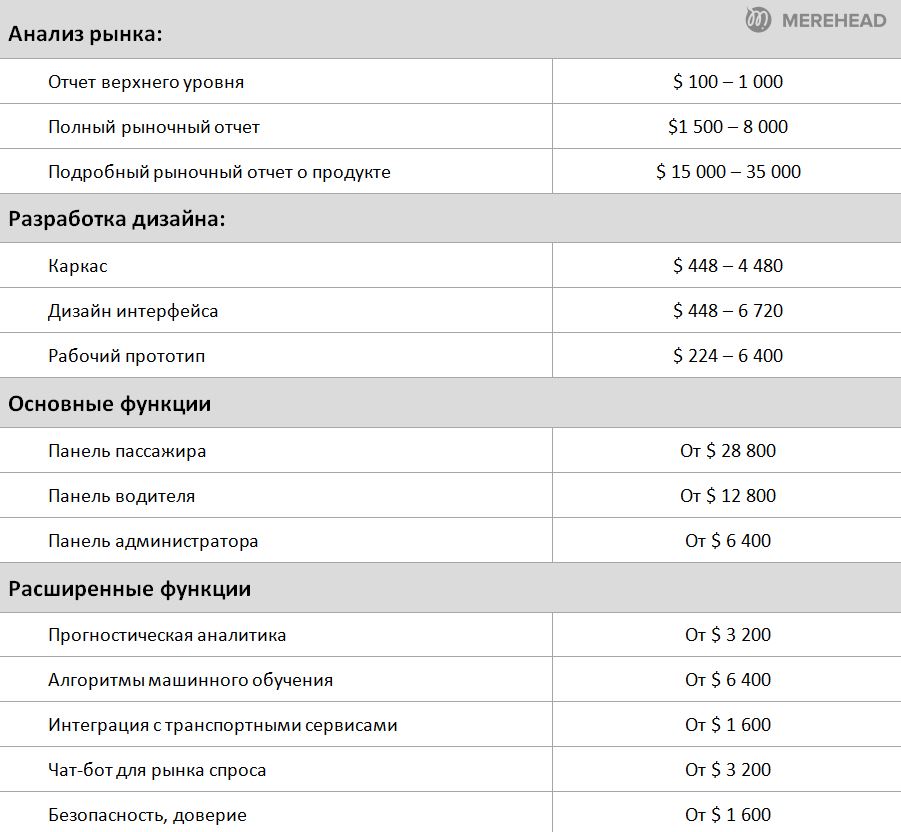 Панель водителя — 400 часов или от 12800 долларов. Некоторые функции для панели водителей могут пересекаться с функциями панели пассажира, например регистрация, геотаргетинг, push-уведомления и обмен сообщениями. В то же время для водителей есть несколько уникальных элементов: