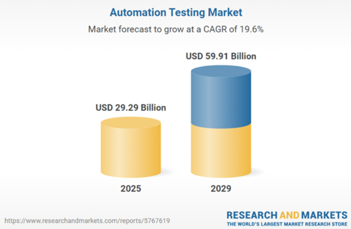 The automated testing market (including mobile and web applications) is also showing rapid growth. Today, it is valued at $29.29 billion, and by 2029, experts predict it will nearly double to $59.91 billion.