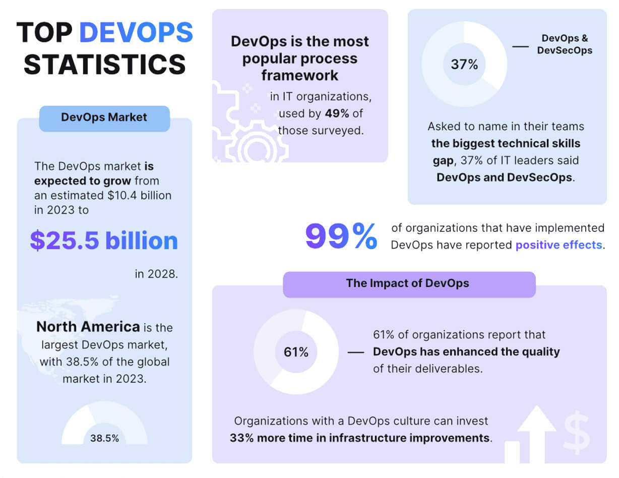 By 2028, the DevOps market is projected to reach $25.5 billion, with an average annual growth rate of approximately 19.7%.