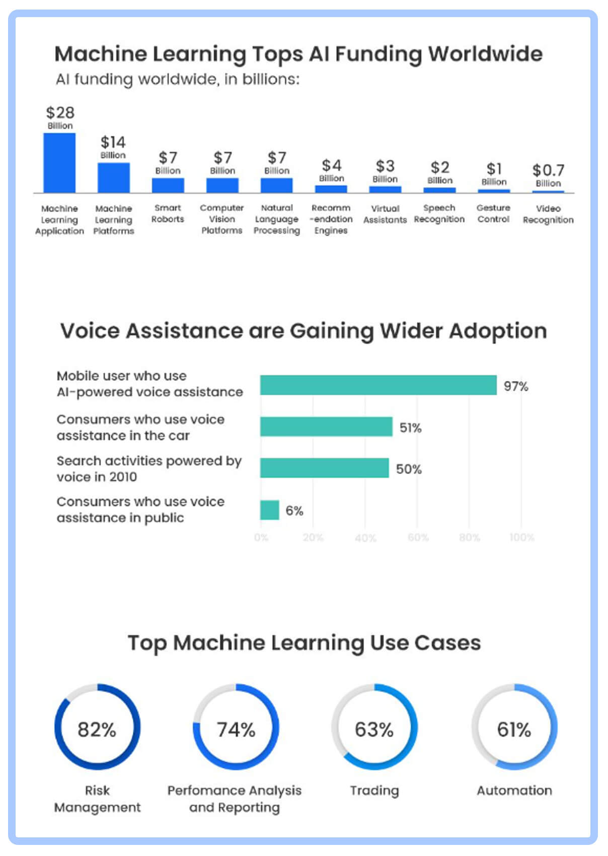 The machine learning/predictive analytics market is vast and growing rapidly. Expert surveys show that more than 50% of companies will implement artificial intelligence and predictive analytics into their business processes.