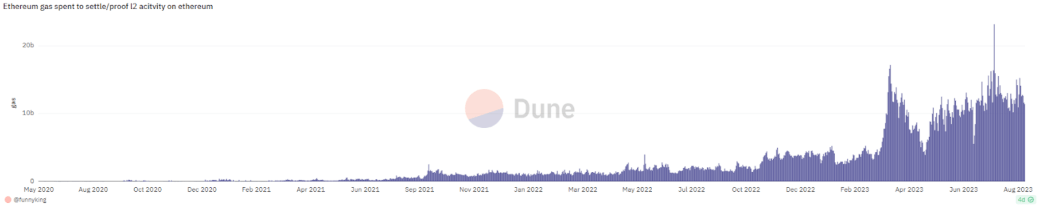 The trend of Tier 2 solutions has already started. According to Dune, 23 billion gas was spent in July 2023, which is a record at the time of writing. This indicates the popularity of L2 solutions and their development next year.