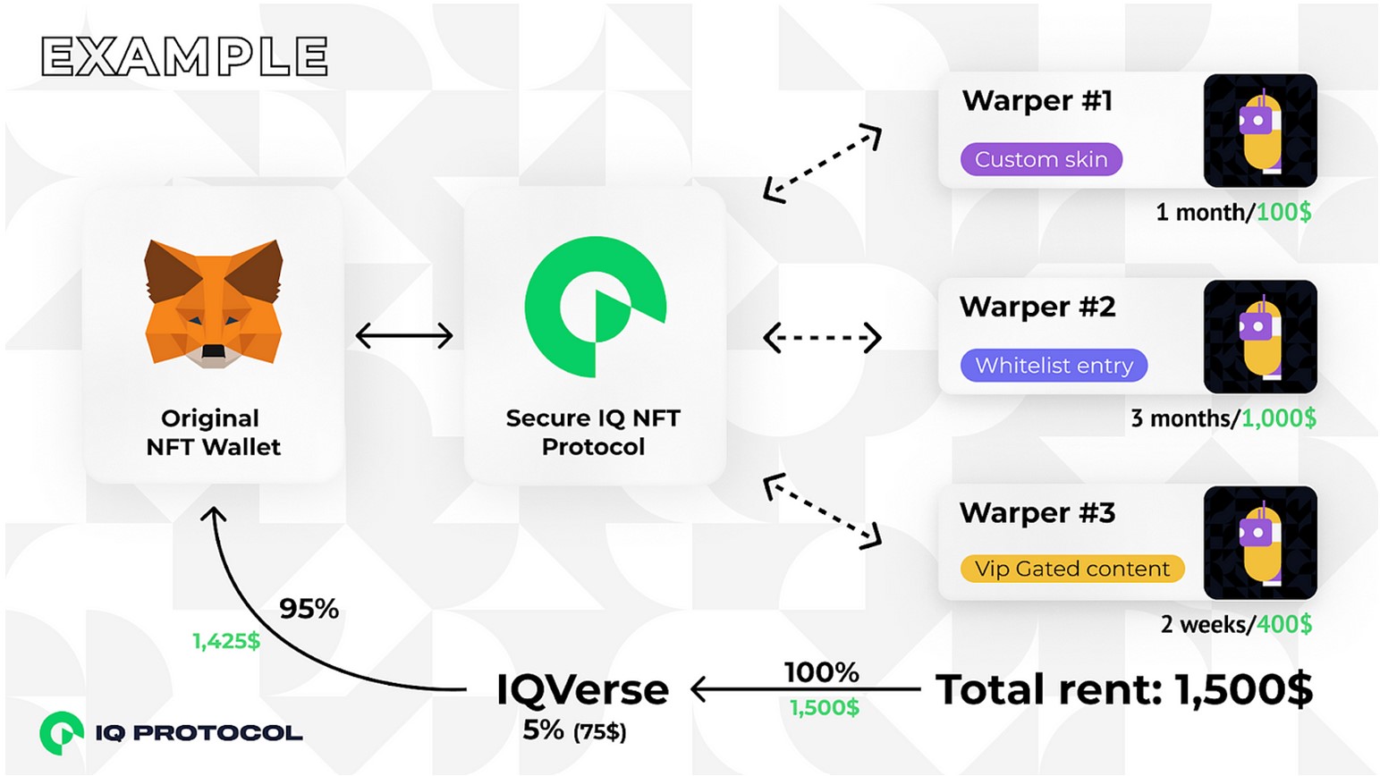 The principle works differently depending on the escrow. For example, the IQ Protocol NFT rental pad calls the borrower IQVerse and the contract of ownership calls the Warper.