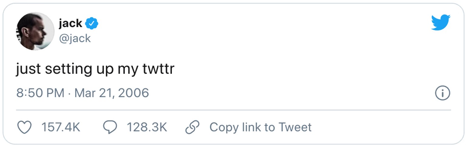 Jack Dorsey's first tweet, sold as NFT for $2.9 million.