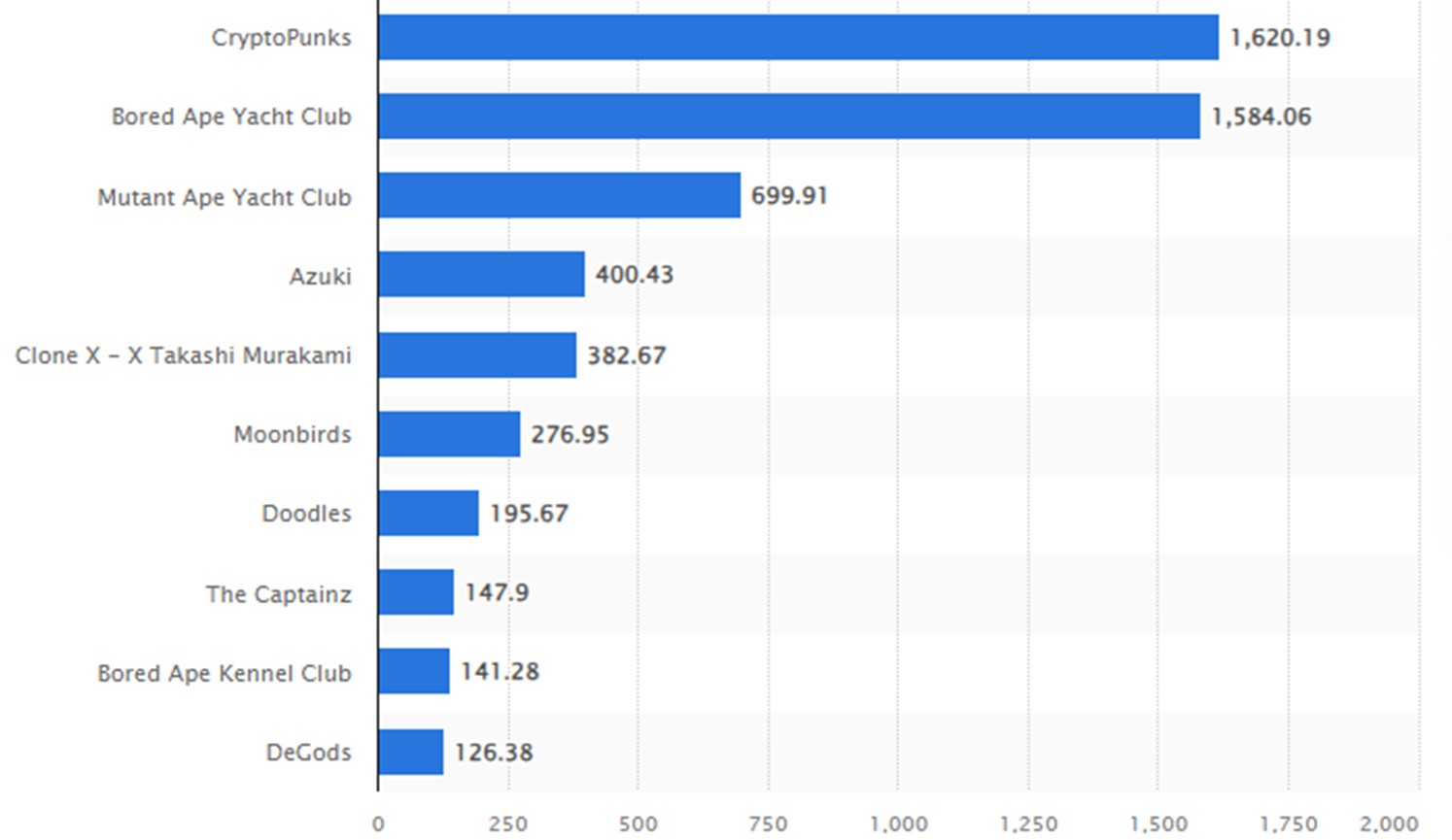 Leading collections of PFP NFTs as of April 2023, by market capitalization.