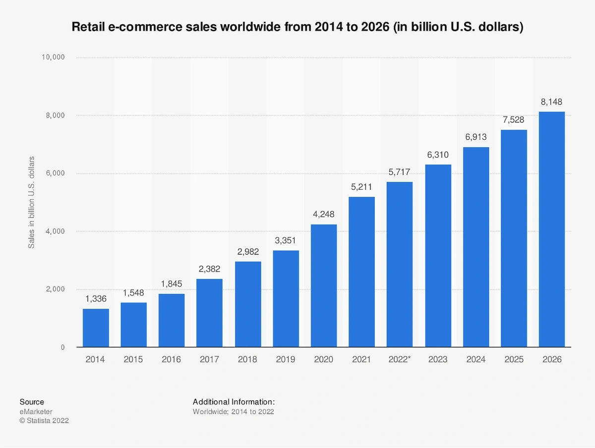 Global retail e-commerce sales volume. Source.