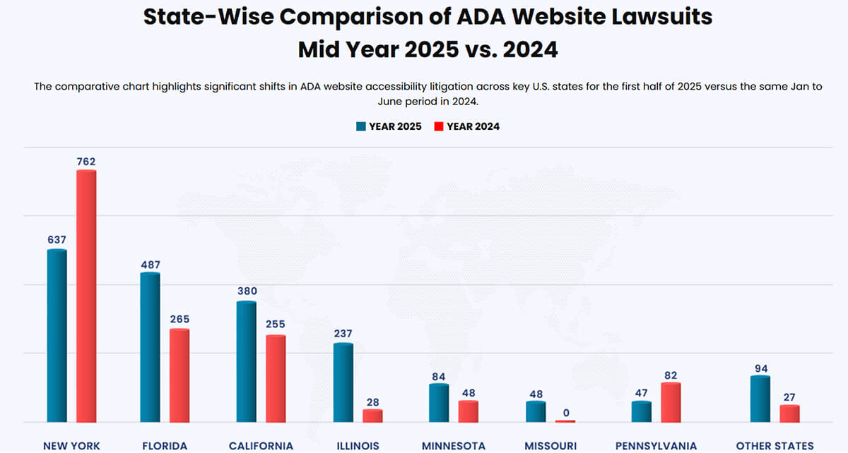 In the U.S., the number of complaints and lawsuits related to ADA compliance on websites continues to rise. For example, experts report a 37% increase in ADA-related lawsuits in the first half of 2025 compared to the same period in 2024.