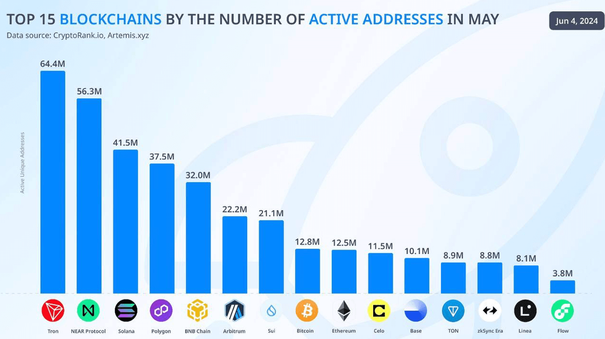 Im Mai 2024 belegte TON in Bezug auf aktive Benutzer den ersten Platz (Cryptorank Daten).