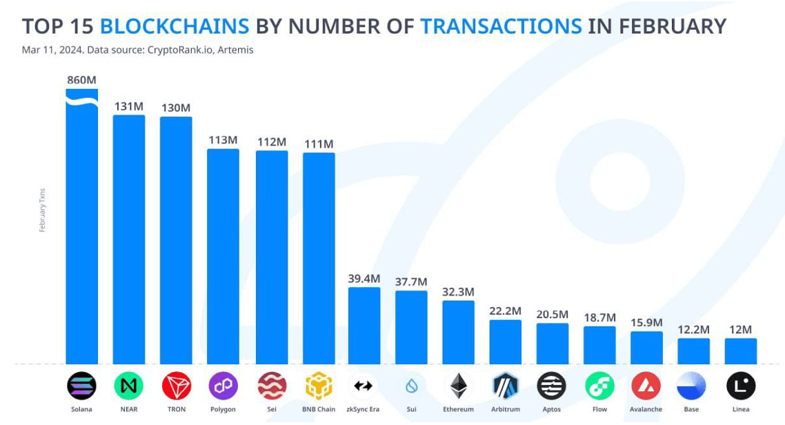 Im Frühjahr 2024 stieg Arbitrum in Bezug auf die Anzahl der Transaktionen in die Top 10 der Blockchains ein.