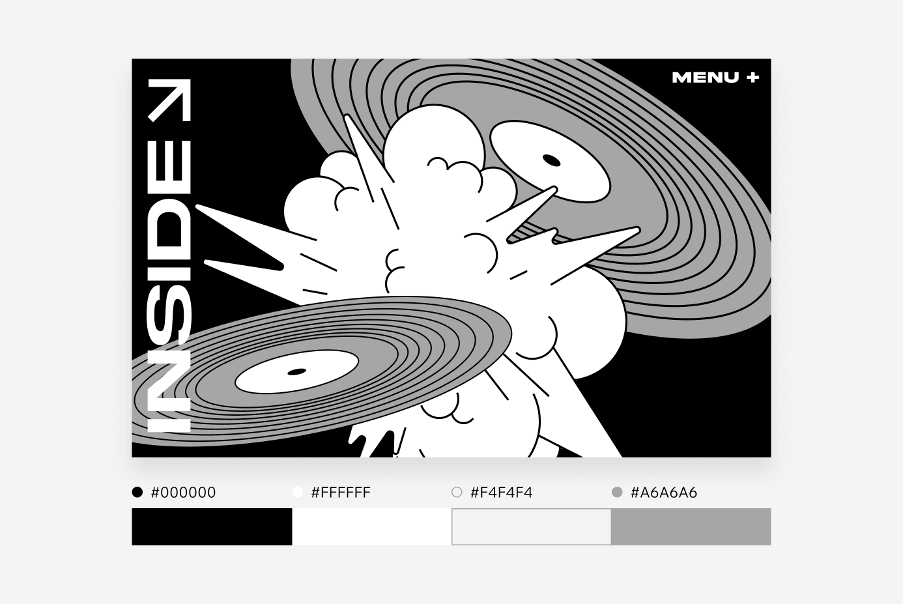 Große Typografien sind beispielsweise optisch ansprechender, wenn sie in diesen monochromen Tönen ausgedrückt werden. Der Schwarzweiß-Stil kann als Anker für neue experimentelle Trends dienen. Sie können mit spektakulären Formen, ungewöhnlichen Schriftarten und kräftiger Typografie spielen, ohne ins Übermaß zu verfallen.