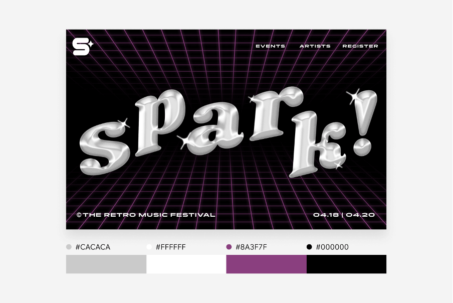 Dieser Mondton wird in der Typografie erfolgreich zum Leben erweckt. Schriftarten mit metallischen 3D-Effekten kommen als Teil des allgemeinen Trends zum Futurismus in Mode. Vielleicht inspiriert Sie das Mond- und Sternenthema beim Design Ihrer Website.