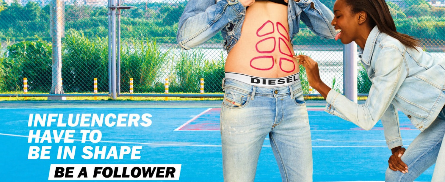 Die Modemarke Diesel beispielsweise setzt in ihren Kampagnen aktiv auf die Bildsprache des Punk. Ihre Werbeplakate schreien dem Betrachter ins Gesicht: zerrissene Elemente, ätzende Farben, verwischte Schriften und bewusstes Chaos. Dies unterstreicht den anarchischen, trotzigen Geist der Marke, insbesondere in den Linien für ein junges Publikum.