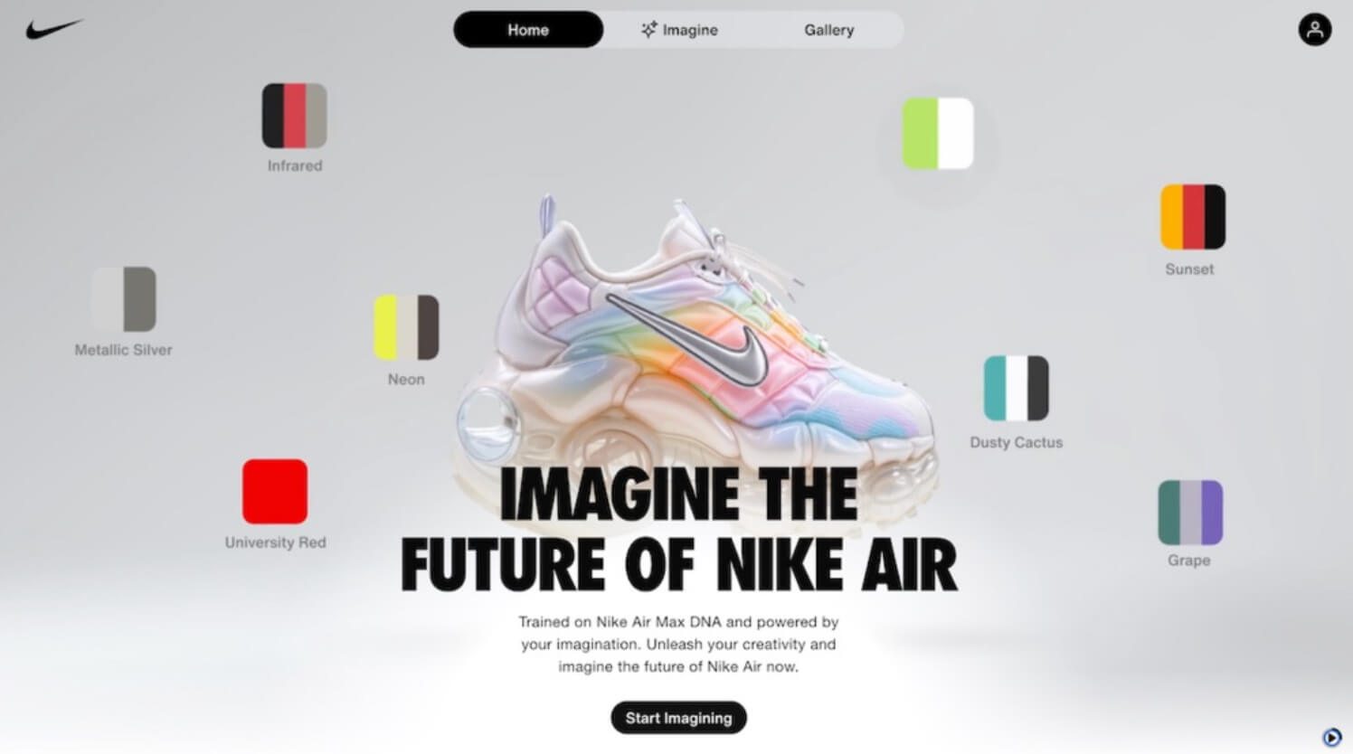 Darüber hinaus lädt das Unternehmen Sneaker-Fans mit der neuen Initiative „Air Imagination“ ein, in die Welt des digitalen Designs einzutauchen. Dieses Projekt, das zeitgleich mit dem Air Max Day am 26. März stattfindet, ermöglicht es jedem, sich wie ein Designer zu fühlen, indem er mithilfe künstlicher Intelligenz einzigartige Versionen der legendären Air Max-Modelle kreiert.