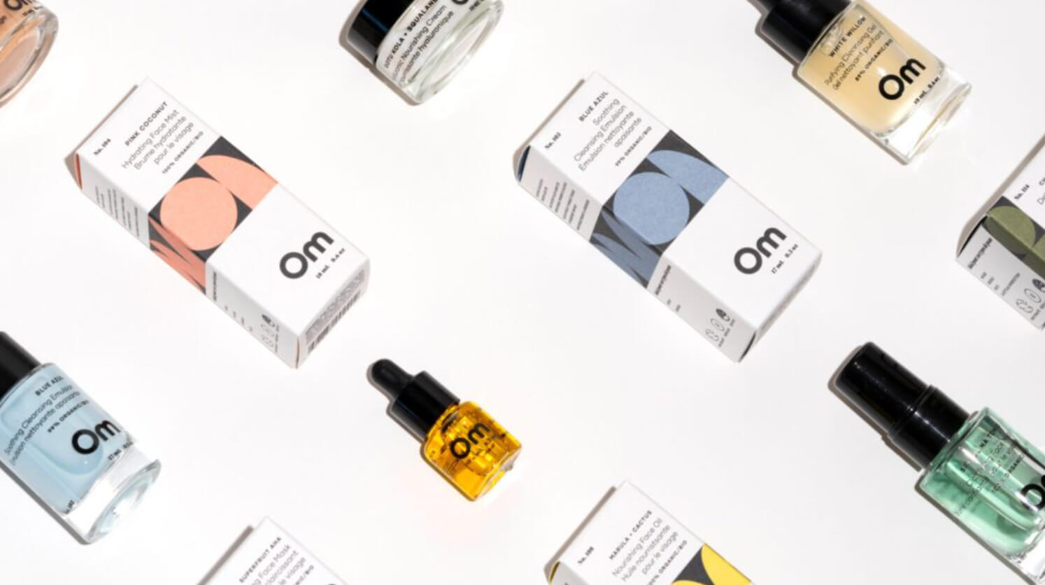 Om, ein Hersteller von Naturkosmetik, ist ein Paradebeispiel für minimalistisches Design seiner Produktetiketten. Das Logo ist direkt auf die Glasflasche graviert – ein strategischer Schritt zur Verbreitung nachhaltiger Verpackungen und zur Reduzierung von Umweltschäden.