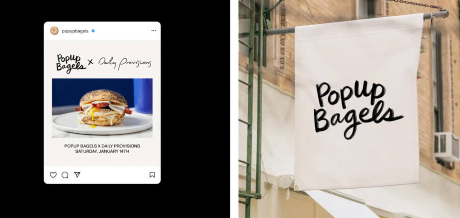 Das Popup Bagels-Logo ist ein Paradebeispiel – es wirkt wie handgezeichnet und vermittelt die gleiche Wärme und Schlichtheit wie das Produkt selbst.