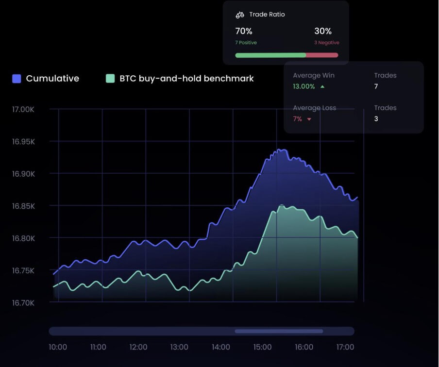 Um die Effizienz der Software besser zu verstehen und die Strategie zu verbessern, können Sie Visualisierungen (Grafiken, Diagramme usw.) verwenden, die das Gewinn-/Verlustverhältnis, die Arten der beteiligten Vermögenswerte usw. anzeigen.