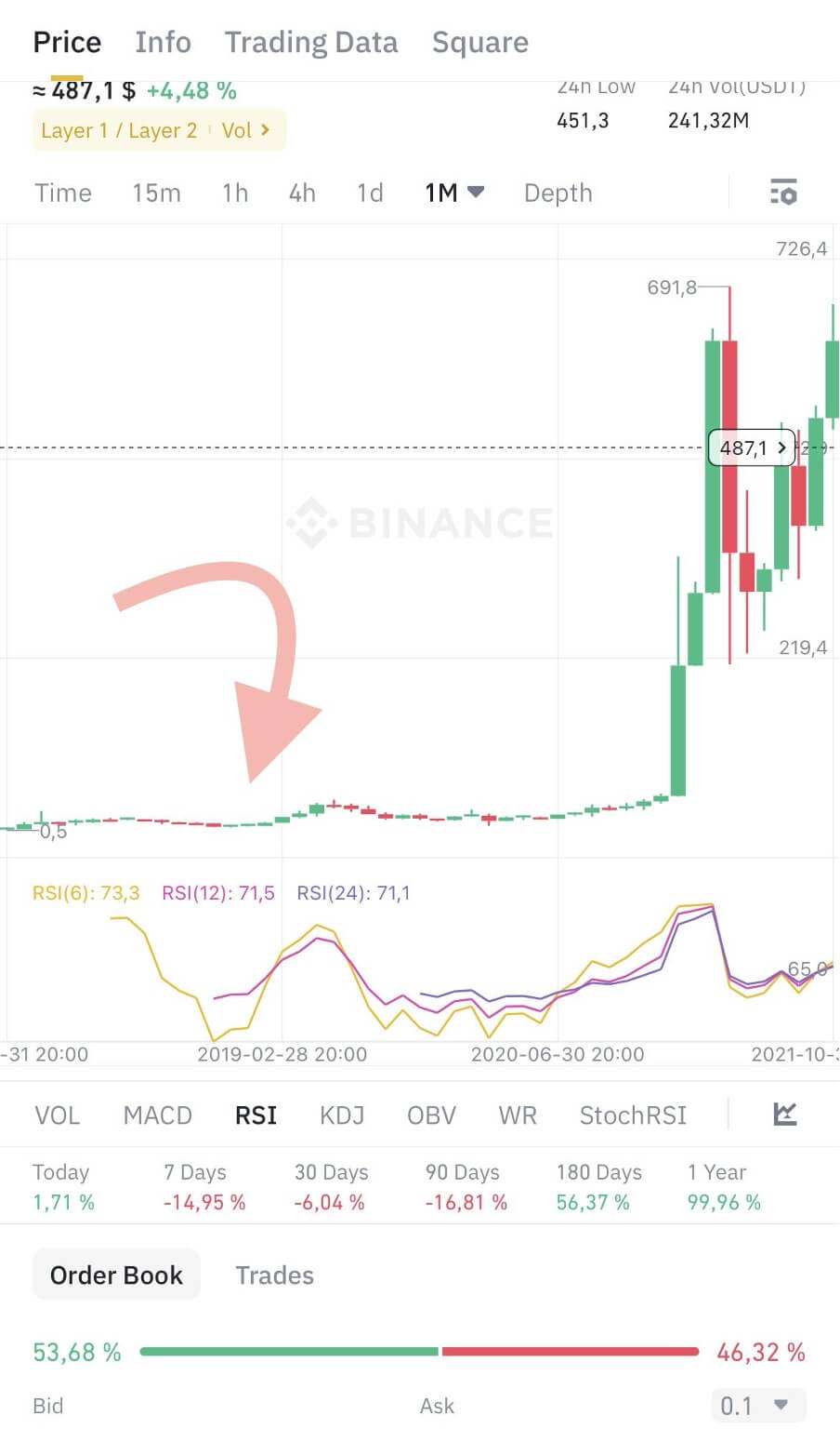 Kryptobörse Binance: Beispiel für einen RSI-Indikator