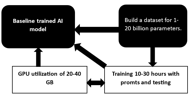 Les clients doivent être conscients que la capacité de mémoire pour développer des applications d'IA simplifiées est relativement petite et que des GPU avec 40 à 80 Go de mémoire sont nécessaires. Les systèmes d'IA générative sont également développés à l'aide de technologies cloud basées sur les services et les ensembles de données appropriés. Pipeline fonctionne bien dans le cloud, en commençant par le traitement de l'ensemble de données, la collecte d'informations et l'analyse des données. Souvent, le bon modèle est déjà établi, ce qui nécessite une formation et un réglage de certains paramètres avec des adaptateurs. Pour représenter la quantité d'informations, rappelez-vous la règle empirique: 10 à 15 milliards de paramètres tiennent dans un GPU de 16 à 24 ou 40 Go.