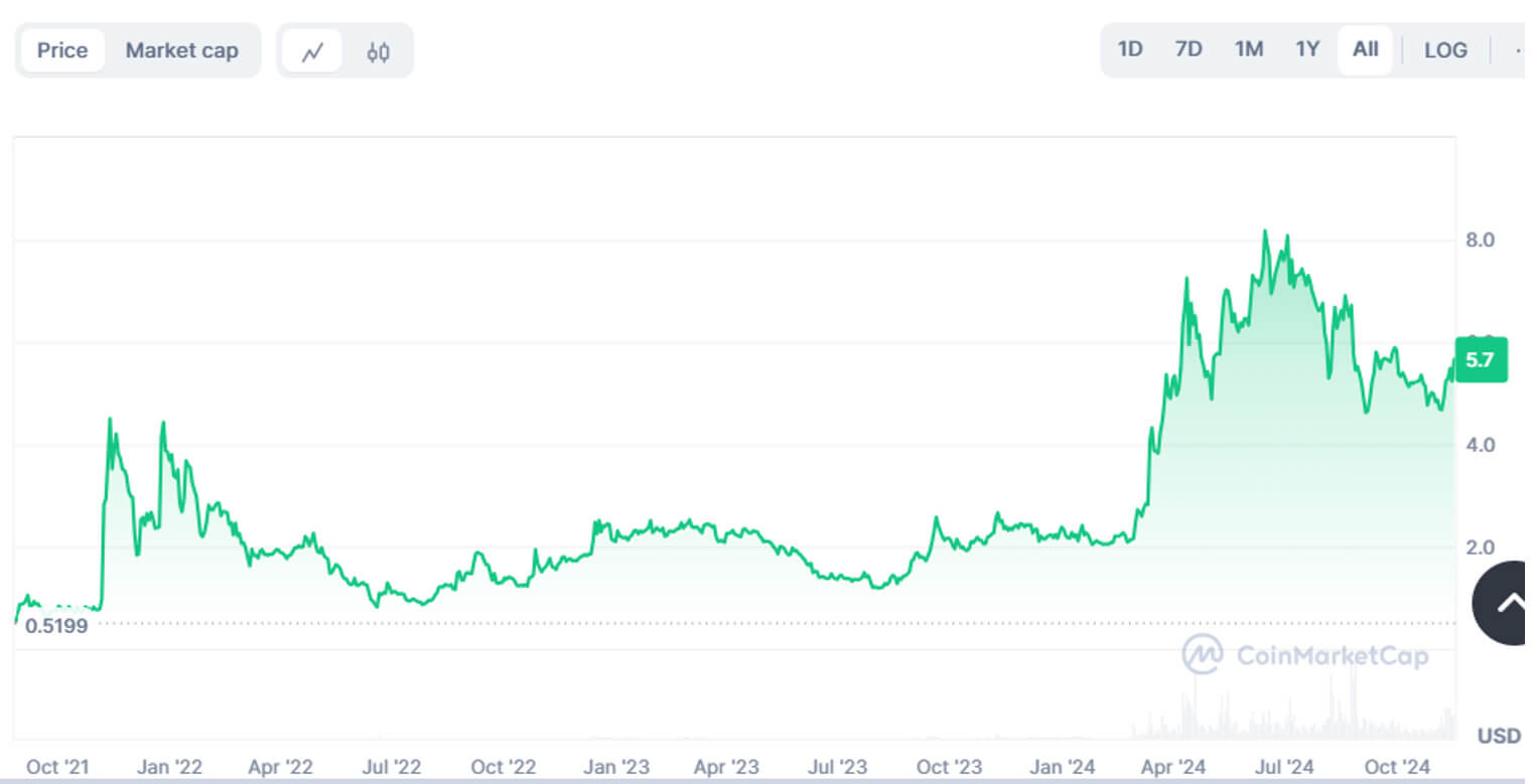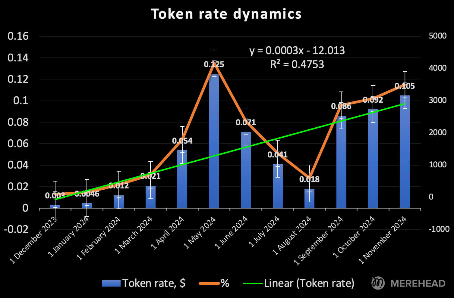 Le tableau est similaire pour ETC, avec une augmentation de 39,58% du taux en 18 jours et une tendance à la hausse continue. Le tableau financier en prévision de l'investiture de Donald Trump en janvier stimule une dynamique positive de croissance des taux de presque tous les tokens et crypto-monnaies. Dans le même temps, la paire EUR/USD a montré une baisse de la monnaie européenne d'un ratio de 1,0929 à 1:1 à 1,042:1 pendant cette période. De telles fluctuations, qui se sont intensifiées après le 21.11.2024, lorsque des missiles hypersoniques « Oreshnik » d'une vitesse allant jusqu'à 7000 mph ont frappé les bâtiments de l'usine Yuzhmash à Dnipro, ont montré que les investisseurs quittent le continent, où il existe une forte probabilité de défaite nucléaire.