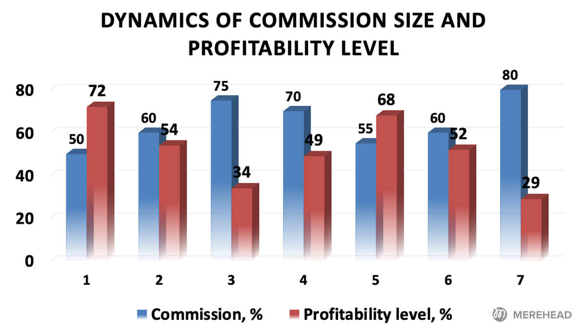 La commission facturée par le courtier peut varier considérablement, se situant entre 50 et 80 %. Par conséquent, le revenu total d'un trader performant, qui dispose de 50 000$, sera supérieur de 4,6 milliers de dollars à celui de celui qui a une rentabilité inférieure de 2 fois, mais qui dispose de 100 000$.