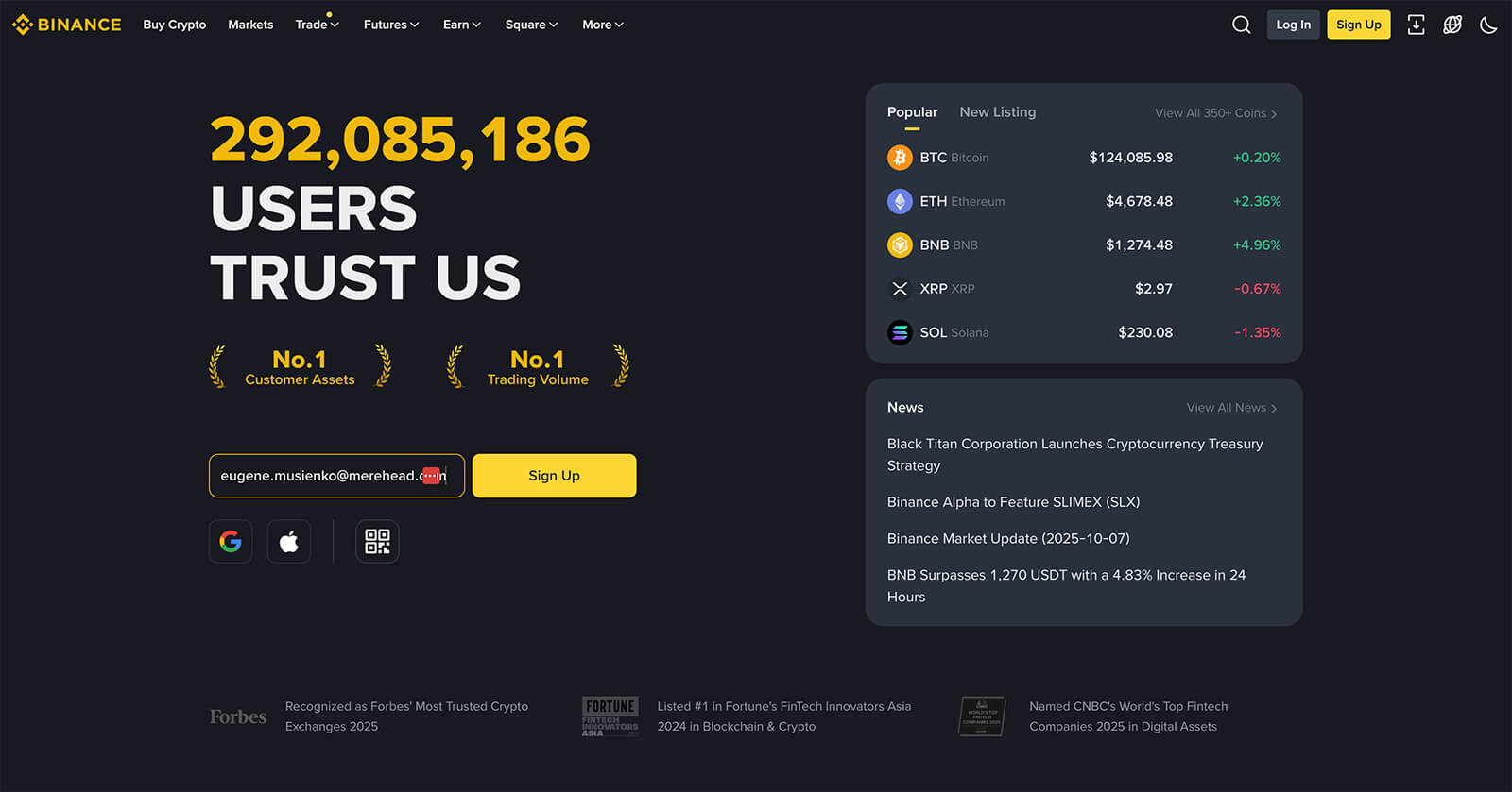 Utilizzando l'esempio del famoso exchange di criptovalute Binance, diamo un'occhiata a una procedura dettagliata per acquistare la criptovaluta virtuale TRUMP Coin: