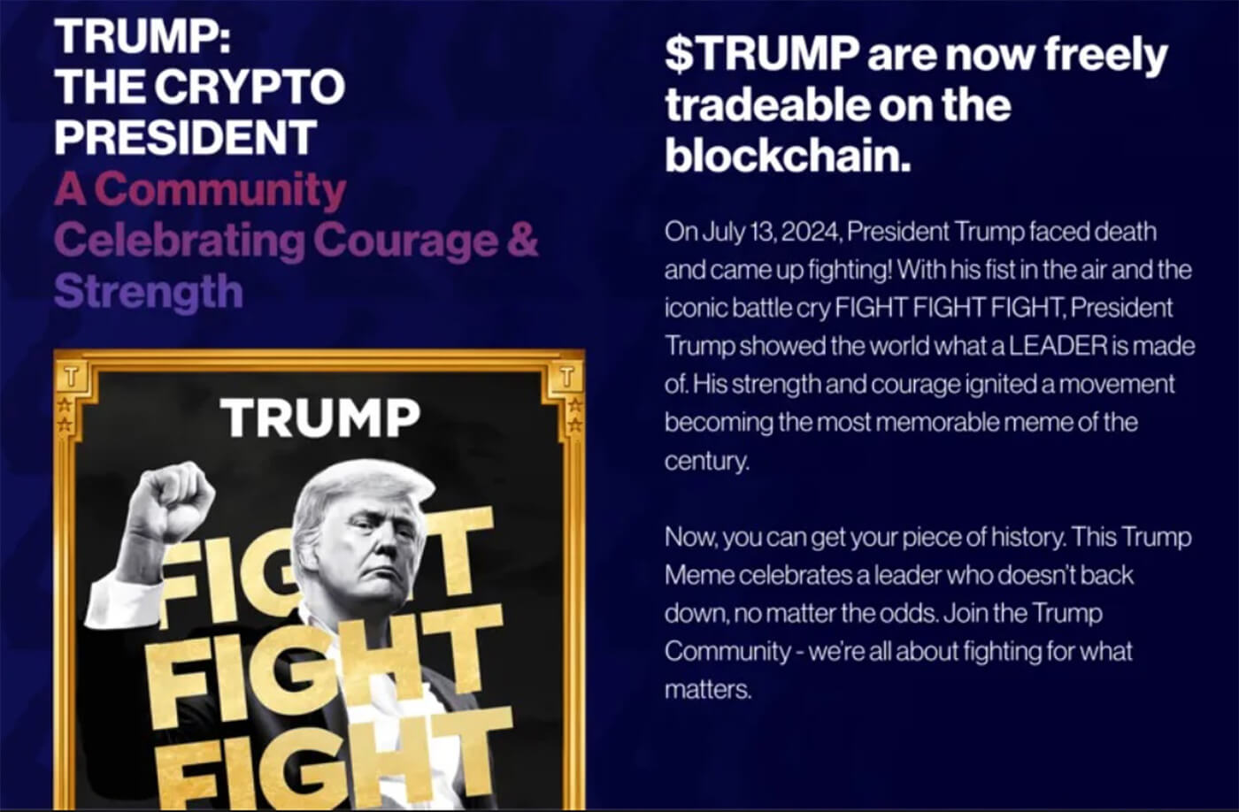 - è un oggetto da collezione digitale: $TRUMP si presenta come una moneta meme e un oggetto da collezione digitale che simboleggia il supporto a Donald Trump;