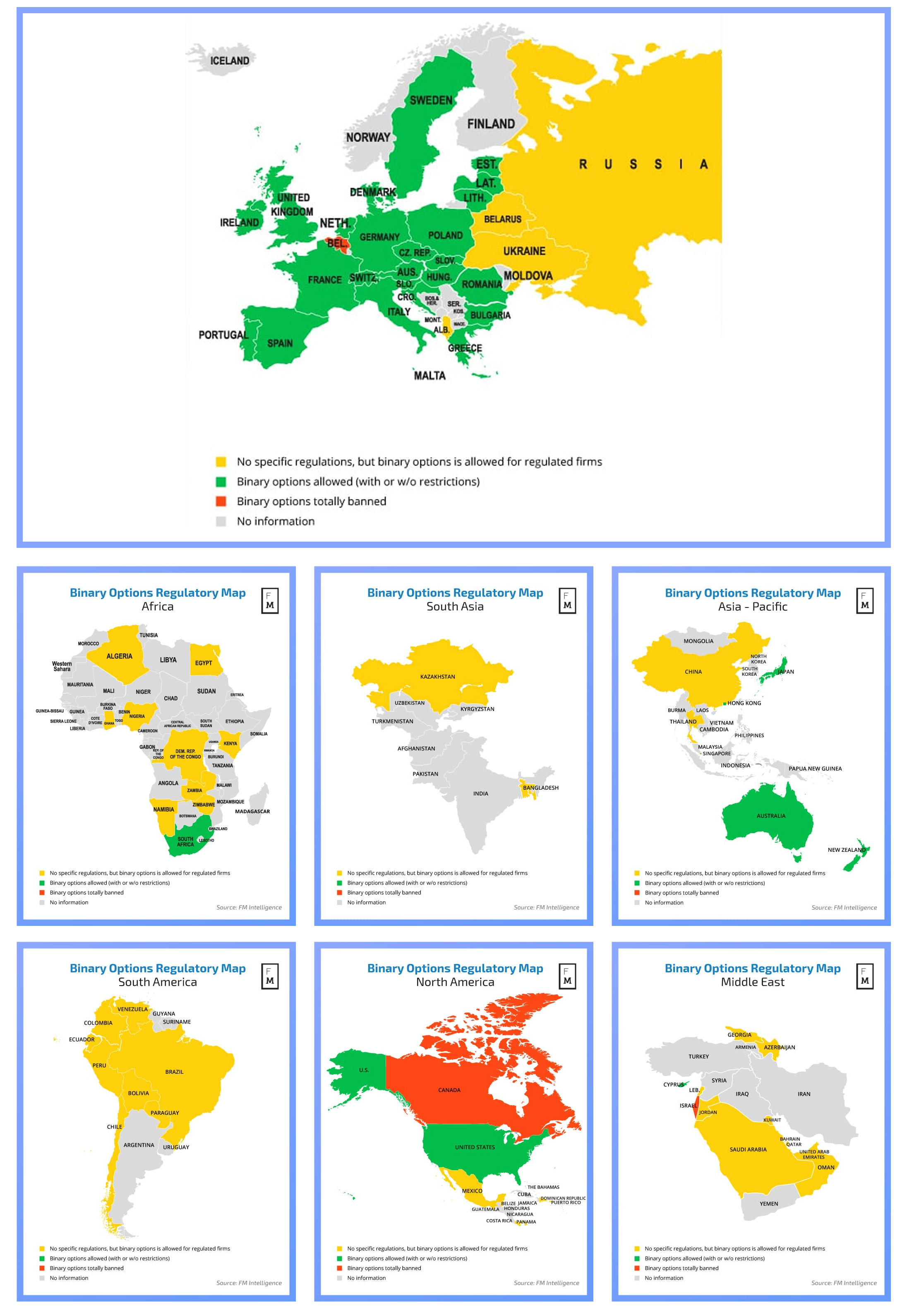 Le opzioni binarie sono legali in Europa, ma con alcune restrizioni. Nel 2018, l'Autorità europea degli strumenti finanziari e dei mercati (ESMA) ha vietato la vendita di opzioni binarie script ai trader al dettaglio dell'UE. Ciò significa che solo i trader e gli investitori professionisti possono negoziare opzioni binarie in Europa. E i trader europei devono scegliere broker regolamentati all'interno dell'UE e conformi alla direttiva MiFID2.