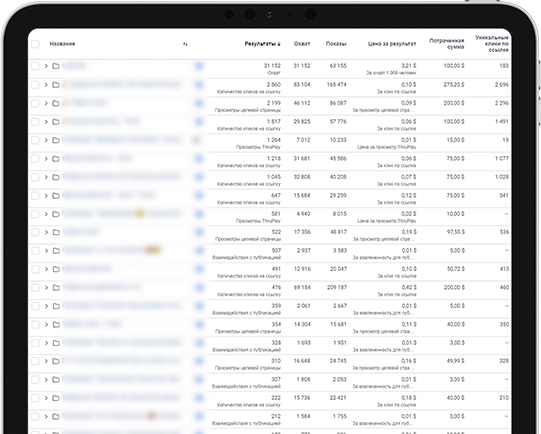 In the test period (two weeks), 24 advertising campaigns were and 52 ads were launched. We tested combinations of different target audiences, placements and goals.