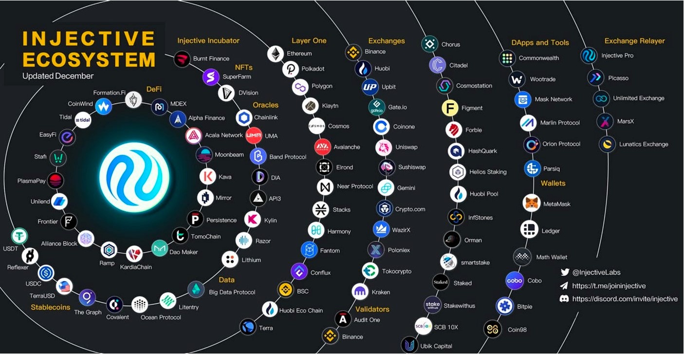 - Injective Chain - протокол позволяет использовать блокчейн-приложения, торговать токенами и т.д.