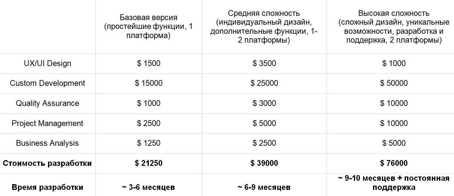 Стоимость разработки приложения