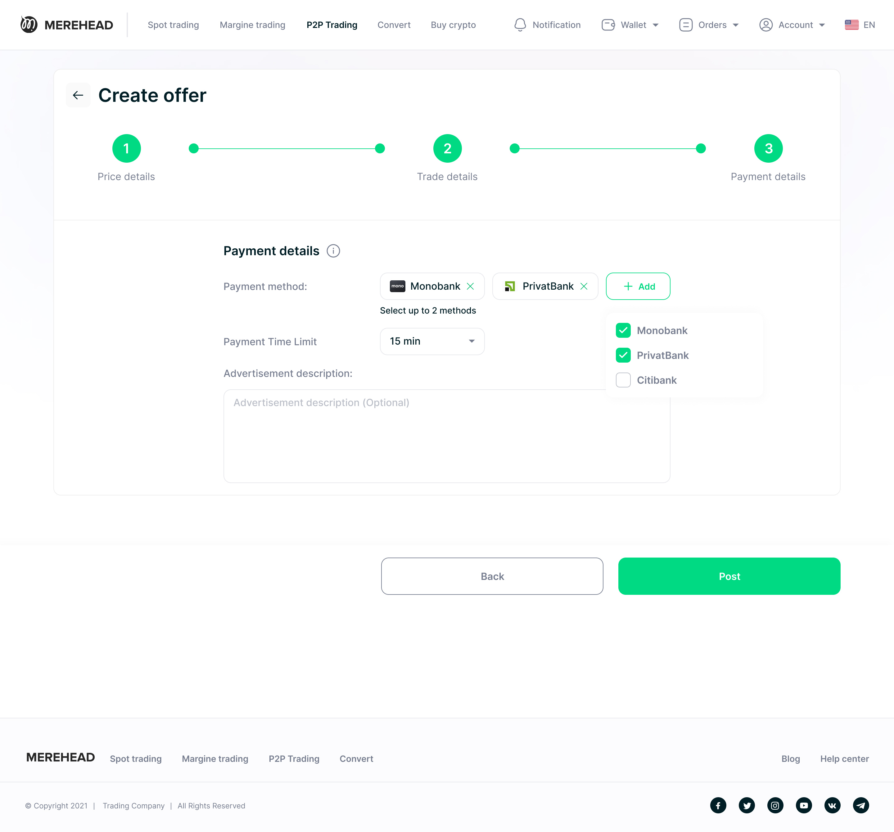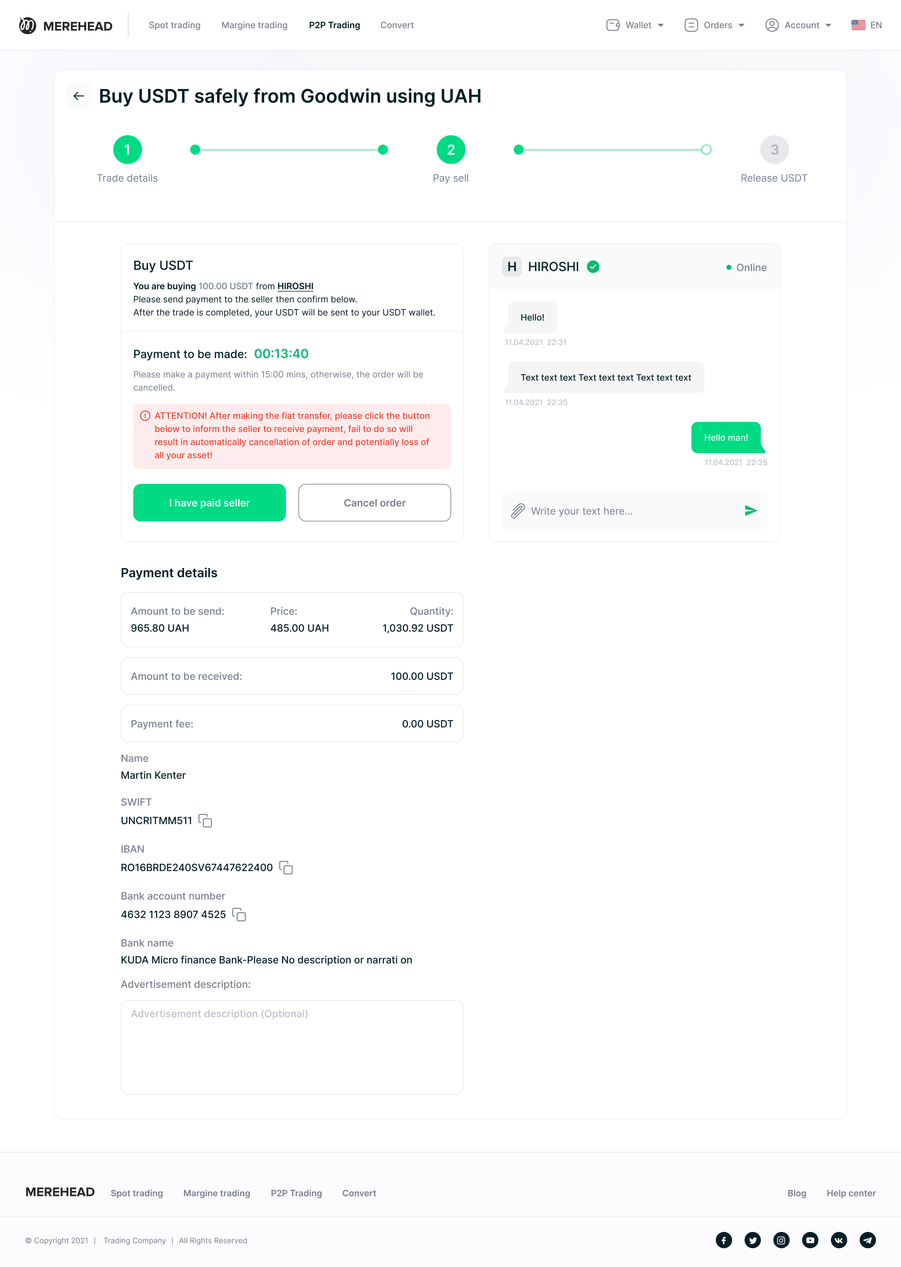 Услуги эскроу:Интегрированный сервис эскроу — это обязательный элемент для любой P2P-криптобиржи. Удерживая средства на эскроу-счете до подтверждения транзакции обеими сторонами, платформа защищает покупателей и продавцов от мошенничества и укрепляет доверие к торговому процессу.