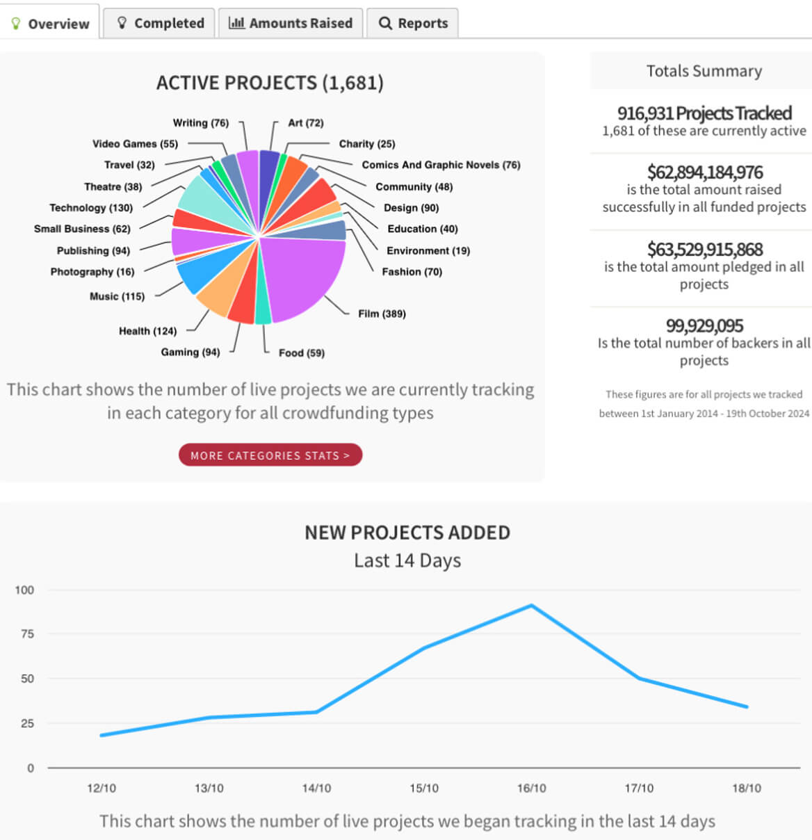 Если речь идет о вознаградительном и долевом краудфандинге, то, согласно исследованию TheCrowdDataCenter, среднее число спонсоров на 1 проект — 300+. Средний процент успеха краудфандинговых компаний составляет 22,4%, но шансы можно значительно повысить, если ставить реалистичные цели и выбирать модель не 100% финансирования идеи, а лишь частичного.