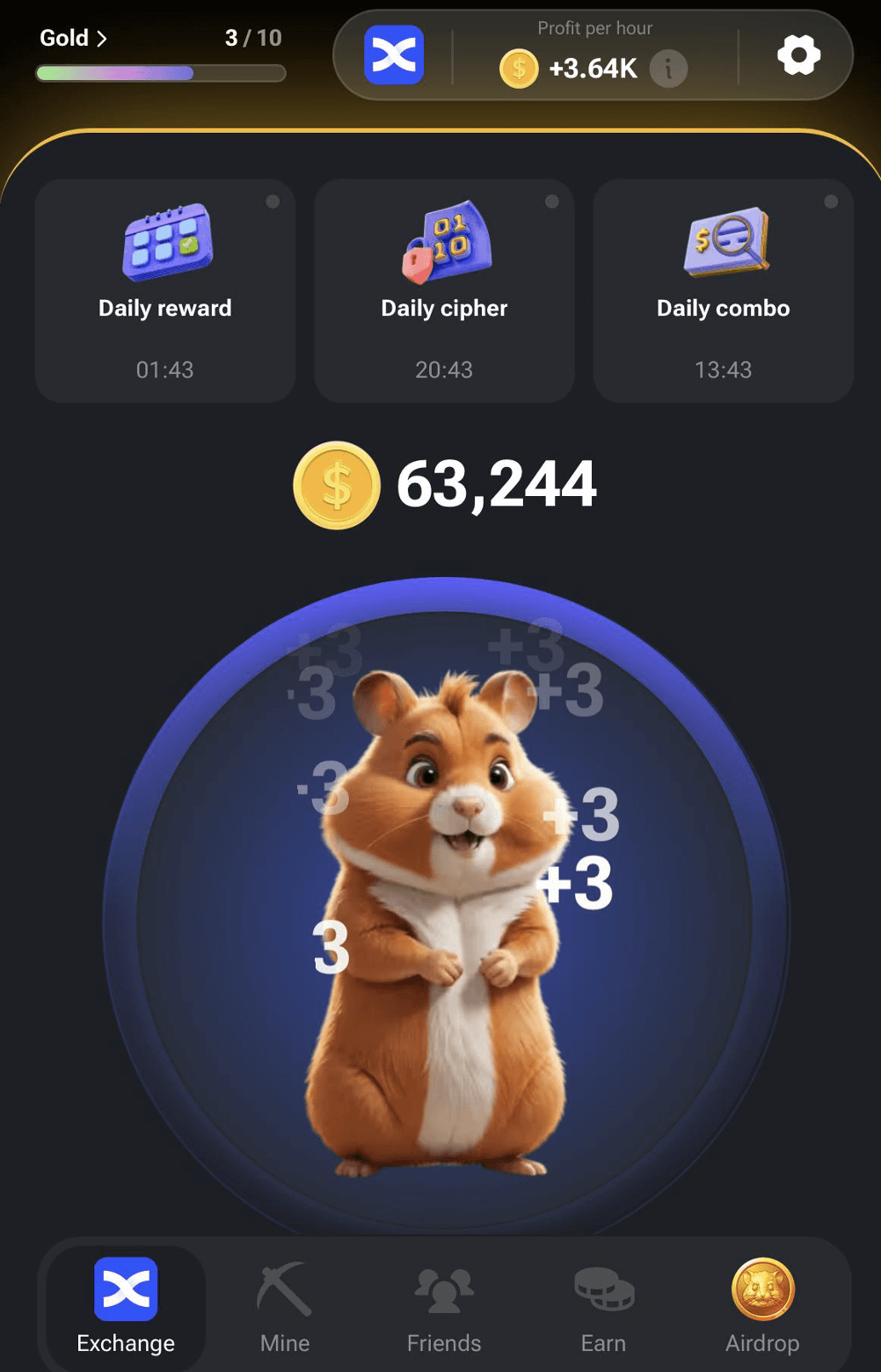Суть Hamster Combat: игрок становится CEO одной криптобиржи на выбор. Он может ее развивать, чтобы увеличивать пассивный доход. А также каждый день он может кликать по «хомяку» на экране, чтобы получать монеты.