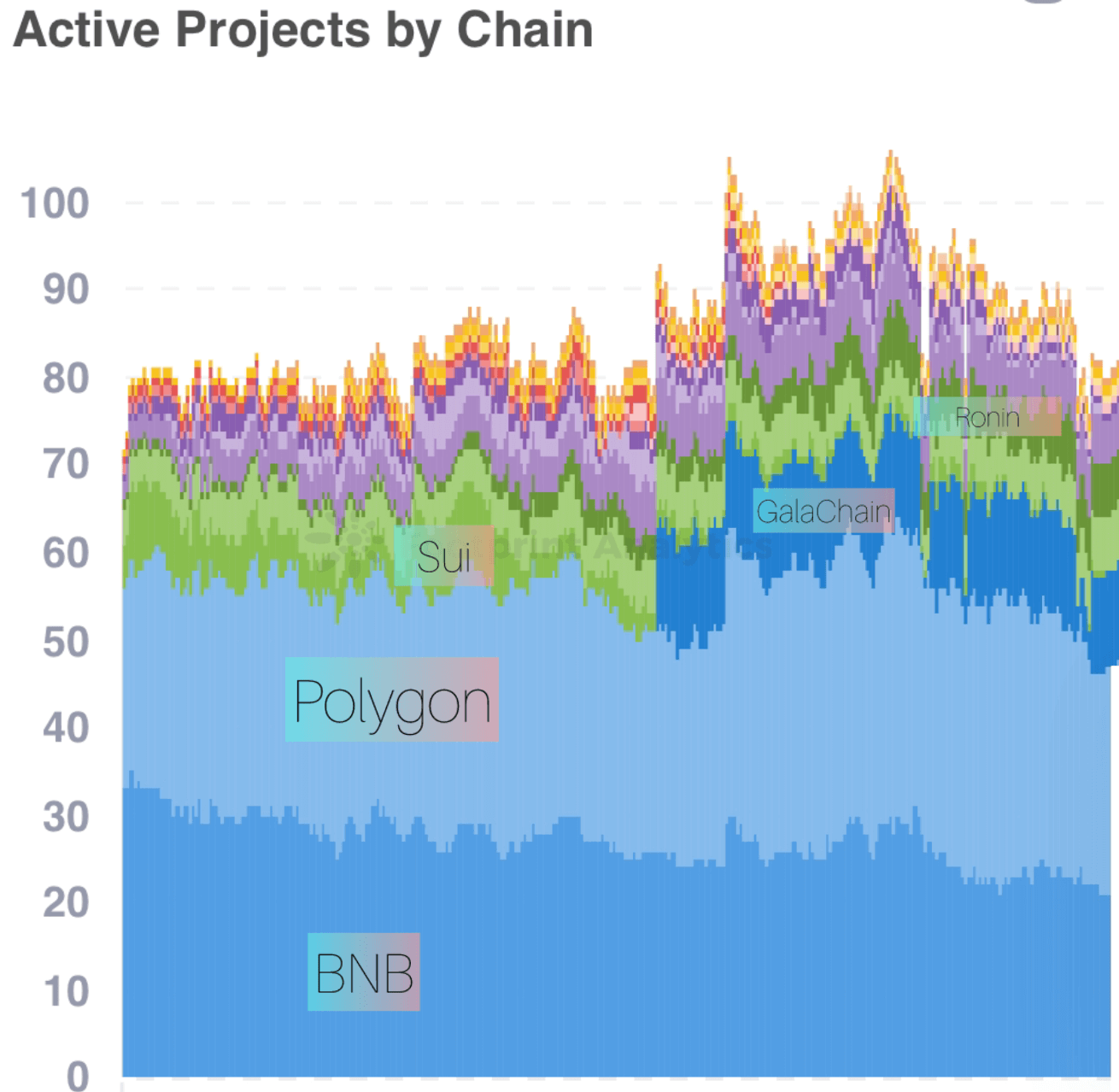 В 2024 году большинство dapps сектора GameFi выпускается на блокчейне BNB, на втором месте – Polygon, на третьем — Ethereum, на четвертом — Solana.