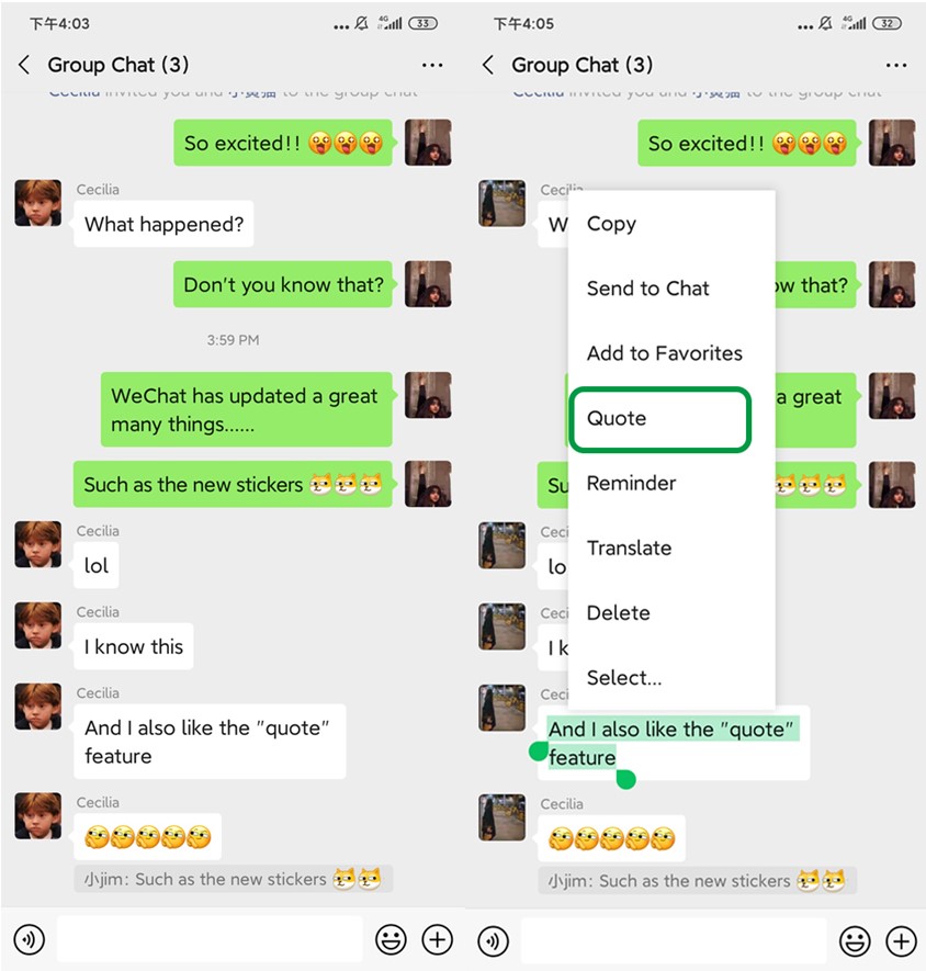Как выглядит обмен текстовыми сообщениями в WeChat.