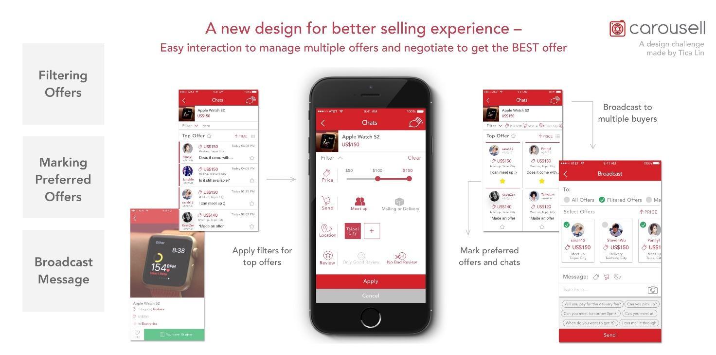 Дизайн Carousell простой, но довольно яркий благодаря сочетанию красного и белого.
