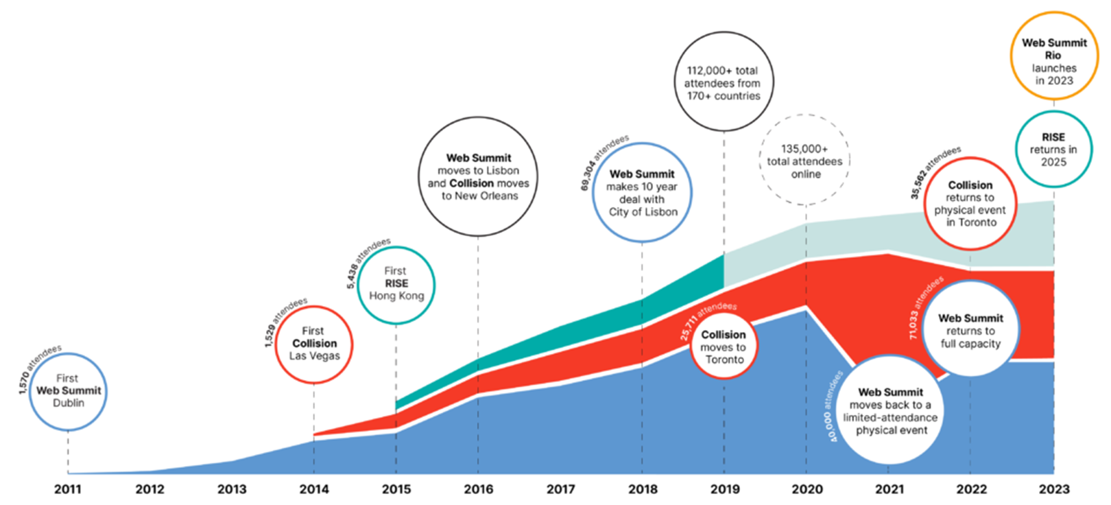 Web Summit - это одна из крупнейших и наиболее влиятельных IT-конференций в мире. Впервые он был проведен в 2010 году в Дублине, и с тех пор его посещаемость и глобальный охват растут в геометрической прогрессии.