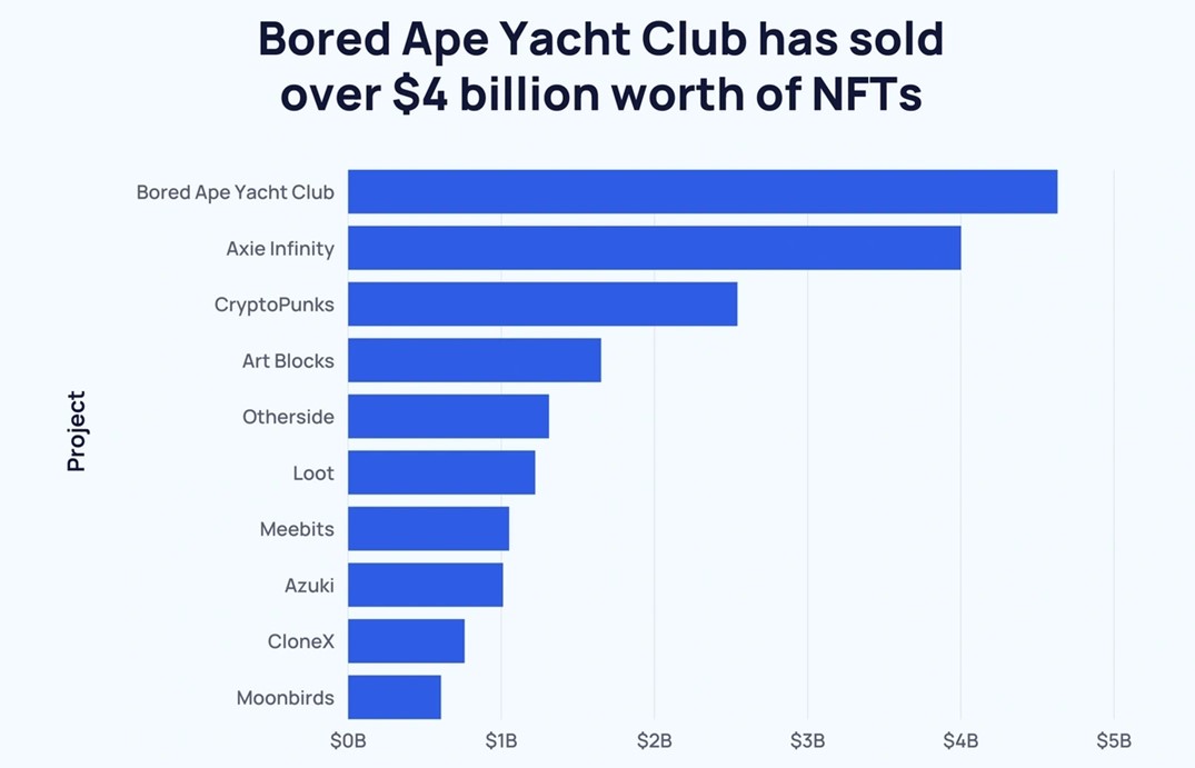 Самой продаваемой коллекцией NFT является “Bored Ape Yacht Club”. Их общая сумма продаж составляет более 4 млрд долларов. Эти и другие случаи продажи NFT задают новые тренды в 2024 году, стимулируя пользователей знакомиться с блокчейном и создавать собственные предметы искусства.