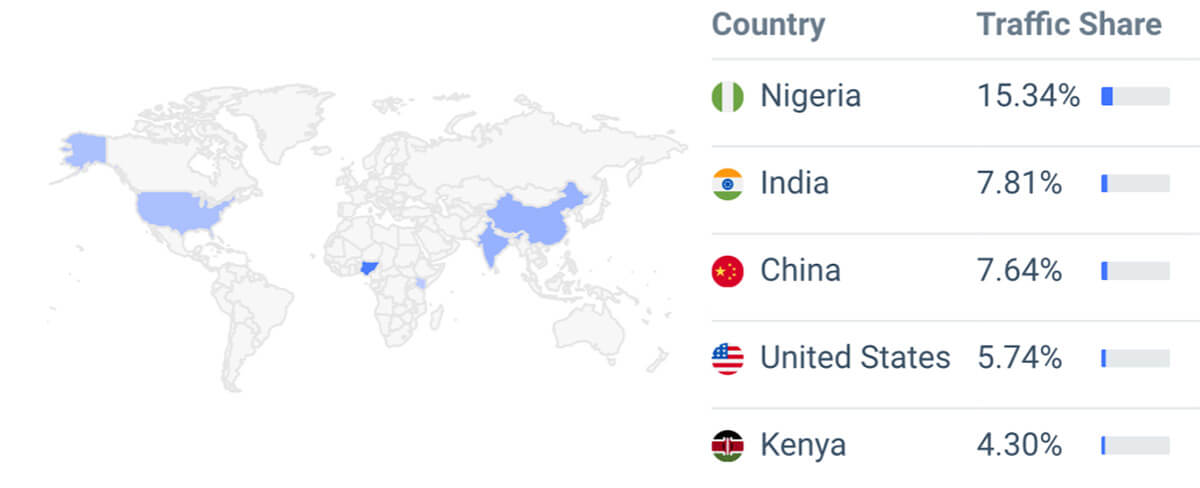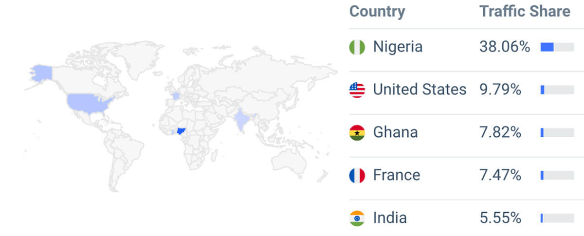 P2P borsası Noones'a göre, ana CA Nijeryalı kullanıcılar (%38,06), ikinci sırada ABD (%9,79) ve üçüncü sırada Gana (%7,82) yer alıyor.