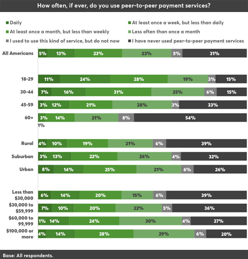 ABD'li kullanıcıların ne sıklıkla P2P işlemleri gerçekleştirdiğine dair anket