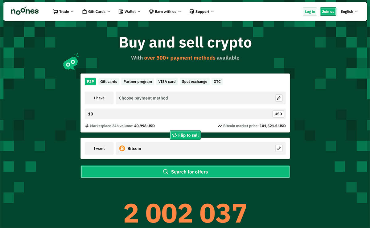 60'tan fazla ülkede faaliyet gösteren bir peer-to-peer platformdur. Toplam kullanıcı sayısı: 1,7 milyon. Aylık işlem hacmi: 100 milyon dolar. Platform merkezi (CEX) olup kripto parada 25+ milyon dolarlık bir rezerve sahiptir. Platformun iOS/Android uygulamaları vardır.