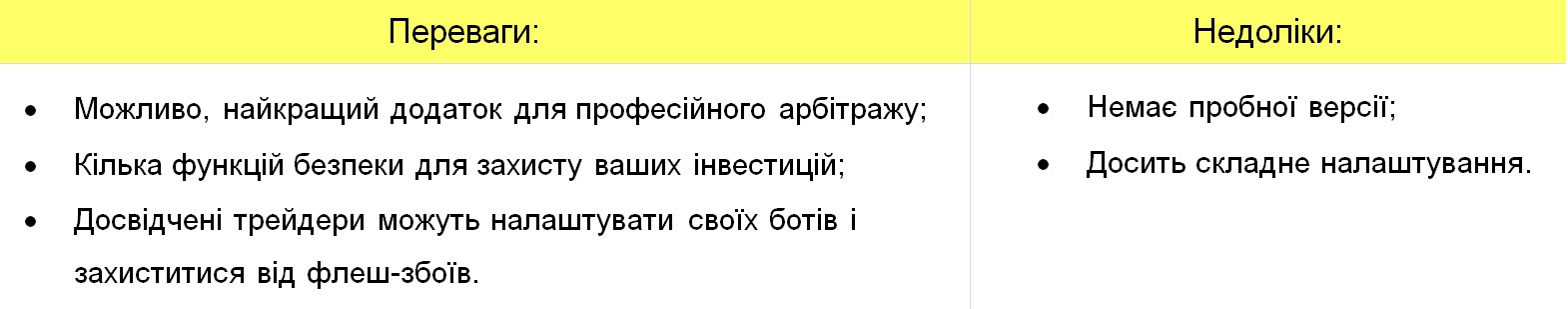 Заробіток на різниці курсів криптовалют на різних біржах можна автоматизувати. Для цього трейдери використовують спеціальні програми — боти. Ось кілька популярних програм для автоматизованого арбітражу криптовалют.
